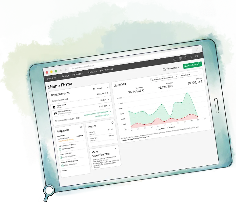 Lexware Office zeigt Dir alle Einnahmen + Ausgaben auf einen Blick