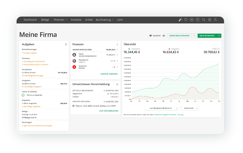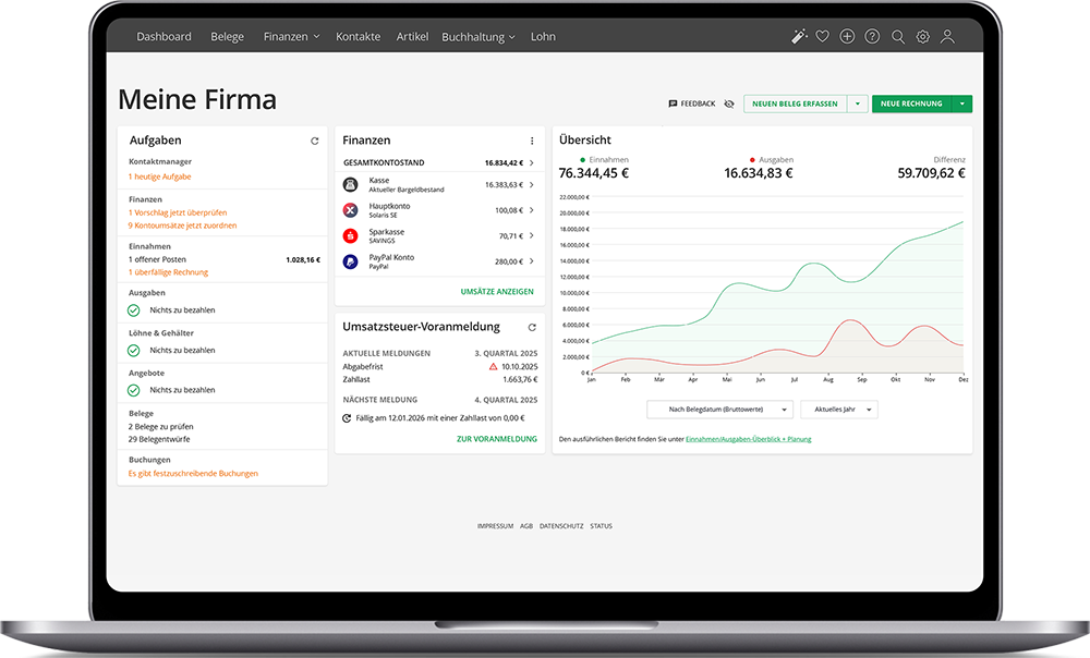 Lexware Office zeigt Ihnen alle Einnahmen + Ausgaben auf einen