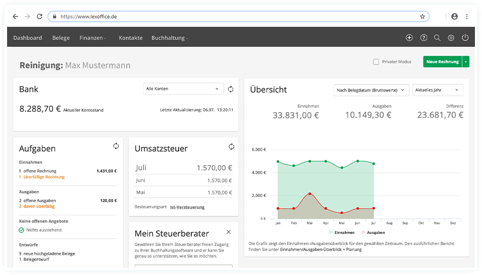 Mit der Verbindung von ePages und lexoffice werden Rechnungen, Gutschriften und Stornos + aller Kundendaten automatisch verbucht.